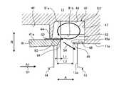 また、案内部材71と第2壁面48との間にロータ12の周方向に連通する連通部72が設けられる。つまり、案内部材71は、内周面46と第1壁面47とにだけ固定されており、第2壁面48に固定されずにここに連通部72が設けられる。この連通部72は、動翼14のシュラウド41における外周面41aよりロータ12の径方向Rにおける外側まで設けられる。  A