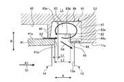 従って、案内部材の端部を突起部の端部より流体の流れ方向における上流側に位置させることから、旋回流生成室に流れ込んだ漏れ流体は、複数の案内部材に案内されることで周方向の速度成分が減少されると共に、複数の案内部材との接触により摩耗が増加して強度が低下することとなり、旋回流生成室から排出される周方向の速度成分が減少した漏れ流体と、旋回流生成室に流れ込む周方向の速度成分を有する漏れ流体とが干渉することで発生する渦流を減少させることができる。 Therefore, since the end of the guide member is positioned upstream in the flow direction of the fluid from the end of the protrusion, the leaked fluid that has flowed into the swirling flow generating chamber is guided by the plurality of guide members and In addition, contact with a plurality of guide members causes wear to increase and strength to decrease. As a result, the leakage fluid discharged from the swirling flow generation chamber has a reduced velocity component in the circumferential direction, and the swirl It is possible to reduce eddy currents generated by interference with leakage fluid having a velocity component in the circumferential direction flowing into the flow generating chamber.