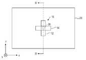 図3に示されているように、表示パネル20の画像が表示される面を画像表示面20a、画像表示面20aに対向する面を裏面20bとする。このとき、図2は裏面20b側から表示パネル20を見た平面図として図示されている。図2には、画像表示面20aの水平方向をx軸、画像表示面20aの垂直方向をz軸、画像表示面20aの奥行方向をy軸とした座標軸が示されている。また、裏面20bから画像表示面20aに向かう方向をy軸の正方向としている。図3は、図2におけるA-A’線における断面図である。  As shown in FIG. 3, the surface of the