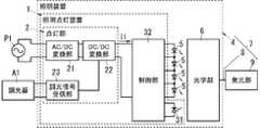 第3の態様に係る照明点灯装置(1;1a)によれば、光ファイバ(8)及び灯具(発光部9)に異常があることを知らせることができる。 According to the illumination lighting device (1; 1a) according to the third aspect, it is possible to notify that there is an abnormality in the optical fiber (8) and the lamp (light emitting unit 9).