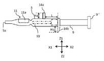 図3は、本実施形態の眼内レンズ挿入器1を左側(Y1方向)から見た側面概略図である。なお、眼内レンズ挿入器1の内部にあるプランジャ9の一部と押し出し部材10を一点鎖線により記載している。