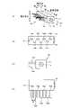 7本のリードピン1Beは、千鳥配置とされている。具体的には、7本のリードピン1Beは、側壁部1bの高さ方向において並ぶ2列を成すように配置されている。7本のリードピン1Beのうち、4本のリードピン1Beaが長手方向に一列をなすように配置されており、3本のリードピン1Bebが、4本のリードピン1Beaの高さ方向下側において、長手方向に一列をなすように配置されている。また、7本のリードピン1Beは、上面視で隣接するリードピン同士が重ならない配置とされている。さらに、各リードピン1Beの先端側は、容器1Bの高さ方向(図の上下方向)の底面側に向いており、かつ先端が、リードピン1Beが設けられた側壁部1bに略平行な直線Lに沿って、略直線状に配列している。  The seven lead pins 1Be are staggered. Specifically, the seven lead pins 1Be are arranged in two rows in the height direction of the
