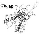 図3Dを参照すると、図のような実施形態では、把持部分14は、把持部分に結合された心臓弁プロテーゼ2の特定の特徴に依存し得る数の複数の弾性フィンガー20で構成される弾性フィンガー部材を含む。後続の図4Aに見られるような大動脈弁プロテーゼの係合に適しているいくつかの実施形態では、弾性フィンガー20は、3つあり、120度の間隔で離間している。フィンガー20の各々は、第1の漏斗形状要素5に対して第1の軸方向位置から第2の軸方向までグリッパー3が軸方向に変位すると、径方向に分岐した状態(図3Aおよび図3Dに見られる)から径方向に折り畳まれた状態に径方向に変位可能である。弾力フィンガー20は、心臓弁プロテーゼ2の径方向外向きに心臓弁プロテーゼ2に係合し、この目的のために、それらには、内向きに突き出た把持端部21が提供されてもよい。いくつかの実施形態では、図に見られるように、フィンガー20は、スタッド10の環状部分19上の対応する軸方向シート19Gと係合する別個のワイヤ状部材として提供されている。他の実施形態では、フィンガー20は、例えば、スタッド10上のシートにスナップフィットするか、または別の方法で係合される共通のリングからのワイヤ状延長部として、一体になっている。いずれにせよ、実施形態では、フィンガー20は、スタッド10に対して片持ち梁式に固定されるように装着され、フィンガー20の固有の弾力性を利用して、径方向に分岐した状態へ戻る運動を促す。他の実施形態では、フィンガーの弾性は、(片持ち梁の代わりにヒンジで留めることができる)フィンガーと協働する板ばねまたは圧延された板ばねなどの付勢機構によって提供されてもよい。3D, in the illustrated embodiment, the gripping