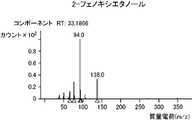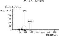 Institute  of  Standards  and  Technology)データベースと比較することで、2-フェノキシエタノールが特定された。図2は、生体ガス中の2-フェノキシエタノール(2-Phenoxyethanol)のマススペクトルデータであり、図3は、NISTデータベースのEthanol,2-phenoxy(2-フェノキシエタノールと同義)のマススペクトルデータである。図2及び図3におけるマススペクトルを対比すると、ほぼ同一の質量電荷(m/z)において同様のスペクトルピークが観察された。このようにして2-フェノキシエタノールが生体ガスとして含まれることが特定された。Subject's biogas adsorbed on each sorbent by heating each sorbent (during the stress task, after the stress task, during the relax task, after the relax task) collected from each subject's armpit identified above. was detached. Mass spectral data of the biogas was obtained by analyzing the desorbed biogas with a gas chromatography-mass spectrometry (GC/MS (manufactured by Agilent Technologies)). Using the company's analysis software, this mass spectrum data is analyzed by the National Institute of Standards and Technology (NIST).