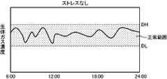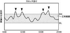 このようにコルチゾールの濃度は、ストレスを評価する上で有効ではあるが、唾液の採取、採血又は尿検査を連続して行うことは現実的ではないので、上記コルチゾールの濃度の時間変化を把握することは困難である。このため、被験者のストレスの時間変化を把握することも難しい。 As described above, the cortisol concentration is effective in evaluating stress, but it is not realistic to continuously perform saliva collection, blood collection, or urinalysis. is difficult. For this reason, it is also difficult to grasp the change over time in the subject's stress.