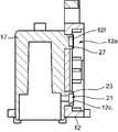従来、薬液を患者へ注入する注入装置には、特許文献1に記載されているように使い捨てのポンプユニットを備えた注入装置がある。このような注入装置は、図25に示されるように、本体102と、使い捨てのポンプユニットであるディスポ部103とを備える。  Conventionally, there is an injection device equipped with a disposable pump unit as described in Patent Document 1 as an injection device for injecting a drug solution into a patient. Such an injection device, as shown in FIG. 25, comprises a