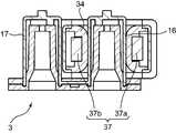 ポンプ装着部33は、本体ケース31の内部に形成され、ポンプユニット3のポンプ用ケーシング5が装着される空間部である。ポンプ装着部33の入口は、カバー32によって開閉自在に閉じられる。ポンプ装着部33の底壁33a(図18参照)には、凸部34(被嵌合部)が底壁33aから上方に突出するように配置されている。ポンプ装着部33における凸部34の両側には、上記の吸引路部挿入空間35および吐出路部挿入空間36が形成され、これらの空間35、36には、吸引路部16および吐出路部17が離間して個別に収容される。  The
