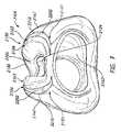 いくつかの構成では、弁口は、凹状の前面に対面し、および弁口および凹状の前面は、流路を画成し、それにより、弁口の領域は、流路の最も小さい領域を形成する。 In some configurations, the orifice faces the concave anterior surface, and the orifice and the concave anterior surface define a flow path, whereby the area of the orifice forms the smallest area of the flow path. do.