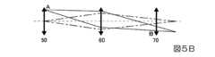 図5Aに示すように、第1回折素子50と第2回折素子70とを共役の関係とした場合、第1回折素子50のA点から出射した発散光は正パワーを持つ導光系60によって集光され、第2回折素子70のB点に入射する。従って、B点で発生する回折による色収差をA点で補償することができる。  As shown in FIG. 5A, when the