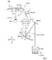 一方、2光束干渉露光で形成されたホログラフィック素子において、主回折面に垂直な面内における回折力が弱く、光を曲げる偏向力が弱い。ここで、主回折面に垂直な面とは、図3Aおよび図3Bの紙面に垂直な面に相当し、以下の説明において、この面を副回折面と呼ぶことにする。本実施形態の光学系10において、副回折面とは図2に示すXZ面に直交する面、すなわち図2の紙面に垂直な面である。  On the other hand, in a holographic element formed by two-beam interference exposure, the diffraction power in the plane perpendicular to the main diffraction plane is weak, and the deflection power for bending light is weak. Here, the plane perpendicular to the main diffraction plane corresponds to the plane perpendicular to the paper surface of FIGS. 3A and 3B, and in the following description, this plane will be called the sub-diffraction plane. In the