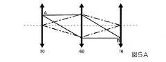 図5Aは、第1回折素子50と第2回折素子70とが共役関係にある場合の説明図である。図5Bおよび図5Cは第1回折素子50と第2回折素子70とが共役関係にない場合の説明図である。図6Aおよび図6Bは、図5Bおよび図5Cに示す第1回折素子50と第2回折素子70との共役関係からのずれの許容差を示す説明図である。図6Aおよび図6Bには、特定波長の光を実線Leで示し、波長が特定波長-10nmの光を一点鎖線Lfで示し、波長が特定波長+10nmの光を二点鎖線Lgで示してある。なお、図5A~Cおよび図6Aおよび図6Bでは、光の進行が分かりやすいように、第1回折素子50、第2回折素子70および導光系60を透過型として示し、第1回折素子50、第2回折素子70および導光系60を矢印で示してある。  FIG. 5A is an explanatory diagram when the