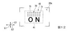 なお、図10及び図11では、複数の凹部71を特定の仮想ボタン41に対して厚さ方向L1に重なる位置に配列したが、例えば図12に示すように、複数の凹部71を、厚さ方向L1から見た平面視で特定の仮想ボタン41から面内方向にずれた位置に配列した粗面部70としても構わない。図示の例では、複数の凹部71を、仮想ボタン40から第2方向L3にずれた位置に配列している。  10 and 11, the plurality of