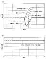 S110では、車両運動制御装置1(の車両運動制御演算部1d)は、前後加速度演算1として、目標軌道、走行可能範囲、車速制御範囲、車両運動状態から、前後加速度指令値および前後加速度制御計画を演算する。例えば車両速度が車速制御範囲を超えて高い場合、車両運動制御装置1(の車両運動制御演算部1d)は、車両速度が車速制御範囲に収まるよう、負の前後加速度指令値を演算する。また、目標軌道がカーブ路形状(走行路の道路曲率(≒走行軌跡の曲率)の絶対値が増加して最大値もしくは略一定に至る形状、もしくは、走行路の道路曲率(≒走行軌跡の曲率)の絶対値が最大値もしくは略一定から減少する形状)となっており、カーブ路に応じた加減速制御をおこなう場合、カーブ路形状に基づいた前後加速度指令値が演算される。例えば、車両運動制御装置1(の車両運動制御演算部1d)は、走行路の道路曲率(≒走行軌跡の曲率)の絶対値が増加し、車両に発生する横加速度の絶対値が増加する区間において負の前後加速度を発生(減速)させ、横加速度の時間変化が大きいほど、発生する前後加速度が小さくなるよう、前後加速度値を制御する(図7(a)、図10(a)参照)。また、車両運動制御装置1(の車両運動制御演算部1d)は、走行路の道路曲率(≒走行軌跡の曲率)の絶対値が減少し、車両に発生する横加速度の絶対値が減少する区間において正の前後加速度を発生(加速)させ、横加速度の時間変化が大きいほど、発生する前後加速度が大きくなるよう前後加速度値を制御する(図8(a)、図10(a)参照)。演算後、S400に進む。  In S110, the vehicle motion control device 1 (vehicle motion