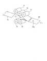 上述のように基材賦形工程S3の処理を行った後、溶融樹脂充填工程S4において、両樹脂射出成形機200a、200bから射出される溶融樹脂MSが、本第2実施形態にいうキャビティC内に次のように充填される。  After performing the base material shaping step S3 as described above, in the molten resin filling step S4, the molten resin MS injected from both the resin