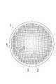 図4には、シャワープレートKA1の内部、特に複数のピラーKA2の径及び密度の分布の一例が示されている。図4に示されているシャワープレートKA1の断面構成は、軸線AXに交差する面であって下部基体KA11と上部基体KA12との間に延びる面における断面構成である。FIG. 4 shows an example of distribution of diameters and densities inside the shower plate KA1, particularly of a plurality of pillars KA2. The cross-sectional configuration of the shower plate KA1 shown in FIG. 4 is the cross-sectional configuration in a plane intersecting the axis AX and extending between the lower base KA11 and the upper base KA12.