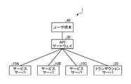実施の形態に係るサービス提供システム1の構成を説明する。図1は、実施の形態に係るサービス提供システムの構成の一例を示すブロック図である。図1に示すように、サービス提供システム1は、複数のサービスサーバ10A~10C、トランザクションサーバ20、API(Application  Programming  Interface)ゲートウェイ30およびユーザ端末40を有する。なお、サービスサーバ10A~10Cについて、特に区別なく説明する場合には、サービスサーバ10と記載する。また、図1に示す構成は一例にすぎず、具体的な構成や各装置の数は特に限定されない。また、図1に示すネットワークの形態について、各装置は、有線または無線を問わず、インターネット、LANやVPN(Virtual  Private  Network)などの任意の通信網を介して通信してよい。[Configuration of service providing system]