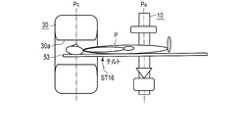 ステップST15の後、ステップST16において、処理回路74は、CT画像の撮影位置における天板53のたわみに関する情報に基づいて、図11に示すように、天板53を水平状態にするように天板53をチルトさせる。なお、処理回路74は、天板53をチルトさせることに加え、当該天板53の高さを変更させてもよい。いずれにしても、被検体Pは、水平状態となる。  After step ST15, in step ST16, the