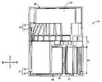 図4は、第1ケース部材12の上面側を示す正面図であり、図5は第1ケース部材12の下面側を示す斜視図である。図6は第2ケース部材14の上面側を示す正面図である。なお、図6では、印刷テープロール26から引き出された印刷テープ22の記載は省略されている。図7は第2ケース部材14の上面側を示す斜視図である。また、図8は印刷テープ22がテープケース20内からリボンケース21内へ架け渡されている状態を示す、図6のVIII-VIII視断面図である。図9は第2ケース部材14の下面側を示す斜視図であり、図10は第3ケース部材16の上(正)面側を示す斜視図であり、図11は第3ケース部材16の下(裏)面側を示す斜視部である。図12は第4ケース部材18の上(正)面側を示す斜視図であり、図13は第4ケース部材18の下(裏)面側を示す下(裏)面図である。  4 is a front view showing the upper surface side of the