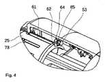 さらに、図2に示した装置の針キャップ本体(25)およびハウジング(4)の一部分を切り出して拡大した拡大図である図3に示されるとおり、周辺フランジ(41)、スイッチアクティベーションリッジ(61)の近位端(62)、およびアクティベーションスイッチ(53)の相対位置を見て取ることができる。この図において、スイッチアクティベーションリッジ(61)の近位端(62)は、アクティベーションスイッチ(53)のわずかに遠位側に位置しているが、アクティベーションスイッチ(53)のかなり近くにある。周辺フランジがアクティベーションスイッチ(53)にほぼ整列しており、すなわち換言すると、アクティベーションスイッチが、針ガード本体の近位端(26)の遠位側に隣接して、針ガード本体(25)の外面の上方に位置していることを、見て取ることができる。この図は、装置が使用を待っており、装置キャップ(80)がまだ取り外されていない初期位置またはゼロ位置に対応する。 Further, as shown in FIG. 3, which is a cut-out enlarged view of a portion of the needle cap body (25) and housing (4) of the device shown in FIG. ), and the relative positions of the activation switch (53). In this view the proximal end (62) of the switch activation ridge (61) is located slightly distal to the activation switch (53), but fairly close to the activation switch (53). . The peripheral flange is generally aligned with the activation switch (53), or in other words, the activation switch is positioned distally adjacent the proximal end (26) of the needle guard body (25). can be seen to be located above the outer surface of the This view corresponds to the initial or zero position when the device is ready for use and the device cap (80) has not yet been removed.