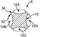 図5Cは、頂点36の近位側の長手方向軸5に沿った位置におけるヘッド6の断面を示す。溝12A、12B、12C、12Dの表面の湾曲した(例えば、実質的に円筒形の)形状をやはり図5Cに見ることができる。  FIG. 5C shows a cross-section of