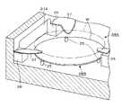 続いてアライメントモジュール20について説明する。アライメントモジュール20は、図2に示すようにロードロックモジュール3Bの下方後方寄りの位置に設けられている。図6に示すようにアライメントモジュール20は、各々2枚のウエハWを上下に保持して位置決めするアライメント機構20A、20Bが2つ、上下に設けられている。以降は上方側のアライメント機構を20A、下方側のアライメント機構を20Bとして記載する。アライメント機構20A、20Bは互いに同様に構成されており、代表してアライメント機構20Aについて説明する。アライメント機構20Aは、上下に間隔を空けて、平面視互いに重なり合うように設けられたウエハWの載置部111、112を備えている。  Next, the
