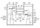また常圧搬送室2内におけるアライメントモジュール20の前方側には、冷却モジュール21A、21Bが左右に並んで設けられている。冷却モジュール21Aは常圧搬送室2の左右の中心よりも左側に、冷却モジュール21Bは常圧搬送室2の左右の中心よりも右側に夫々設けられている。冷却モジュール21A、21Bは、複数のウエハWを上下方向に載置する図示しない棚状の載置部を備え、載置部に載置されたウエハWは、後述のFFU23によって形成される気流に曝されて冷却される。左側の冷却モジュール21Aは、第1の常圧搬送機構4AによりウエハWの受け渡しが行われ、右側の冷却モジュール21Bは、第2の常圧搬送機構4BによりウエハWの受け渡しが行われる。