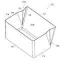 図3は、図1のハウジング110の伸縮壁120a・120bが広がった状態を例示する斜視図である。図3に例示するように、2つの伸縮壁120a・120bは、エアバッグクッション102(図2参照)が膨張展開する際に、このように広がる。これにより、4つの側壁112・114・116・118の上側の開口が広がる。  FIG. 3 is a perspective view illustrating a state in which the