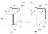 図4(a)に例示するハウジング210では、2つの伸縮壁220a・220bの各々は、蛇腹状に折り畳まれている。これにより、エアバッグクッション102が膨張展開すると、図4(b)に示すように蛇腹状の伸縮壁220a・220bが長方形状に広がり、4つの側壁112・114・116・118、すなわちハウジング210の上側の開口210aが広がる。したがって、第1実施形態のエアバッグモジュール100と同様の効果を得ることが可能となる。  In the