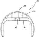 第2のプレート84又は中間シム84は、滑らかな外面を備えた金属又はプラスチックの薄くて細長い実質的に長方形のプレートである。第2のプレート84は、厚さが約0.01~0.02インチ(0.254~0.508mm)である。遠位端部は、舌部106を有し、近位端部は、下側ジョー50の棚部76及び舌部78と連結可能に構成された溝108を有している。別の形態では、2枚の第2のプレート84a,84bが設けられ、各第2のプレートは、厚さが約0.005インチ(0.127mm)である。一方の第2のプレート84aは、この一方の第2のプレートが第1のプレート82に向かって力を及ぼすようしなっており、他方の第2のプレート84bも又、この他方の第2のプレートが第3のプレート86に向かって力を及ぼすようしなっている。  The