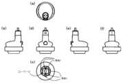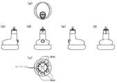 図2は、美容器本体1の6面図である。(a)は上面図、(b)は左側面図、(c)は底面図、(d)は正面図、(e)は右側面図、(f)は背面図を示している。本体内部には、RF制御回路2、吸引ポンプ3、ポンプ駆動回路4が格納されている。RF制御回路からの信号を供給する信号線および吸引ポンプの吸い込みホースと一体化した図示されないケーブルによってプローブ5と接続される。美容器本体1は、本実現例のように操作が容易なように縦型とし、本体上部にはタッチパネル等の操作用モニタおよび下部に車輪を取り付け、移動可能とする構造であっても良い。例えば、美容器本体1には、上記の吸引ポンプ3の出力制御および電極6からのラジオ波の出力制御を可能とするボタン、あるいは回転スイッチを備える。使用者の状態、体感に合わせて、適切な美容施術を施すための設定が可能となる。  2A and 2B are six views of the beauty device body 1. FIG. (a) is a top view, (b) is a left side view, (c) is a bottom view, (d) is a front view, (e) is a right side view, and (f) is a rear view. An RF control circuit 2, a suction pump 3, and a pump driving circuit 4 are housed inside the main body. It is connected to the