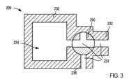 図2は、隔離部分234が出口236を介して通気できることを示しているが、他の実施形態では、ハウジング230は、隔離部分234と連通し、デバイス200の使用前に隔離部分234に配置された内容物の通気を可能にするように構成されている(図2~4には図示せず)、任意の適切な開口部(複数可)、出口(複数可)、通気口(複数可)、ポート(複数可)などを含む、および/または画定することができる。いくつかの実施形態では、これらの通気部または同様のものへのアクセスは、アクチュエータ250および/または任意の他の適切なデバイスによって制御されることができる。他の実施形態では、隔離部分234は、制御デバイス200を使用する前に通気されない。そのような実施形態では、アクチュエータ250は、(図2に示すように)保管構成に保管されることができ、および/または入口232が隔離部分234と流体連通する構成に保管されることができる。  Although FIG. 2 shows that