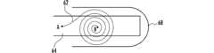 流体力学的キャップ56は基本的には任意適切な形を有し得る。実施形態では、キャップの最長寸法は5mm未満である。形は筒形、弾丸形、球根形、楕円形、円形、弓形、球形、長円形、三日月形、半円、豆形、バナナ形、ドーナツ形または長方形であり得る。他の形も考えられる。流体力学的キャップは任意適切な生体適合性材料で作製され得る。  The