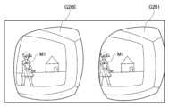 本実施形態では、例えば、図4に示すように、左右の目でそれぞれ視認される画像G200、G201を生成することで、立体視画像を生成してよい。図4には、左右の目でそれぞれ視認される画像G200、G201が模式的に示されている。なお、以下では、特に言及しない限り、端末用画像として生成される仮想空間の画像とは、画像G200、G201で表現される画像全体を指す。 In this embodiment, for example, as shown in FIG. 4, a stereoscopic image may be generated by generating images G200 and G201 that are viewed with the left and right eyes, respectively. FIG. 4 schematically shows images G200 and G201 visually recognized by the left and right eyes, respectively. In the following, unless otherwise specified, the virtual space image generated as the terminal image refers to the entire image represented by the images G200 and G201.