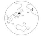 図2には、実空間において2人のユーザが地球上の離れた位置にいることが模式的に示されている。本実施形態では、このように実空間において離れた位置P1、P2にいる2人のユーザが、同じ仮想空間内で交流できる。 FIG. 2 schematically shows that two users are at separate positions on the earth in real space. In this embodiment, two users at positions P1 and P2 separated from each other in the real space can interact in the same virtual space.