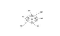 また、図14~図17に示すように、工具装着部56には、先端工具91の容易な取り外しを可能とするための付勢機構58が設けられている。本実施形態では、付勢機構58は、工具装着部56のバネ収容部563内に配置された付勢バネ581を含む。バネ収容部563は、工具装着部56の上面から下方に凹む環状の凹部564と、凹部564の底面から工具装着部56の下面(凹部550の天面)まで、工具装着部56を上下方向に貫通する3つの貫通孔565とを含む。貫通孔565は、周方向において等間隔で設けられている。本実施形態では、付勢バネ581は、全体としては円環状の板バネである。付勢バネ581は、凹部564に嵌合可能な円環状のベース部582と、ベース部582から屈曲して上方に突出する3つの凸部583と、ベース部582から屈曲して下方に突出する3つの凸部584とを含む。凸部583は、周方向において等間隔で配置されている。また、凸部584も、周方向において等間隔で配置されている。なお、各凸部584は、隣接する2つの凸部583の中間位置に配置されている。つまり、凸部583および凸部584は、周方向において、等間隔で交互に配置されている。付勢バネ581は、ベース部582が撓むことで、上下方向に弾性変形するように構成されている。  In addition, as shown in FIGS. 14 to 17, the