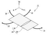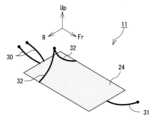 なお、これまで説明した構成は、いずれも、一例であり、少なくとも、シート本体24を、1以上の後吊り具30、1以上の前吊り具31、および、2以上の横吊り具32を介して車内の構造物から吊り下げ保持されるのであれば、その他の構成は、適宜、変更されてもよい。したがって、シート本体24の構成や形状は、適宜、変更されてもよい。また、吊り具の構成や個数、位置等も適宜、変更されてもよい。  It should be noted that the configurations described so far are all examples, and at least the