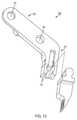 図12は、第2のジョー113を第2のソケット122に解放可能に固定するための第2のラッチ124の拡大図を示す。第2のラッチ124は、上述した第1のラッチ118と同様である。第2のラッチ124は、第1のラッチ位置と第2のラッチ位置との間で移動可能なスライダブルアクチュエータ188を含み、第2のジョー113をロックおよびロック解除する。スライダブルアクチュエータ188は、付勢されたラッチ部材190と動作可能に接続され、ラッチ部材190を圧縮バネ(図示せず)または他のバイアス部材の付勢に抗して移動させることを可能にする。より詳細には、この特定の実施形態では、スライダブルアクチュエータ188は、付勢されたラッチ部材190が固定的に接続される背面を有する。ラッチ部材190は、突出切欠き157を介して、第2のジョー113の近位端177に設けられた切欠き179と解放可能に係合し、第2のジョー113を第2のソケット122に解放可能に固定する。  FIG. 12 shows an enlarged view of