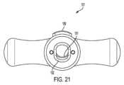 図20~図21は、T型ハンドルの形態の例示的な摘出装置101を示す。摘出装置は、T型ハンドルの遠位端のまわりに位置し、オリフィス192を含む協働する迅速継手187を介して、細長いボディ102の近位端104のまわりの取り付け機構103に接続される。協働する迅速継手187は、スプリングまたは他の付勢機構(図示せず)によって付勢されるアクチュエータ189を含む。図21に示される通常付勢された位置では、アクチュエータ開口191は、オリフィス192によって提供されるチャネルが、スプリング付勢されたアクチュエータ189によって部分的に妨害されるように、オリフィス192によって提供されるチャネルと整合されない。細長いボディ102の迅速継手がT型ハンドル101の協働する迅速継手187に挿入されると、フレア113は、スプリングまたは他の付勢部材の付勢に抗してアクチュエータ開口部191を前進させ、アクチュエータ開口部をオリフィス192によって提供されるチャネルと同時整合状態に強制的にさせて、迅速継手の遠位方向に増加する直径を収容する。アクチュエータが迅速継手の環状凹部171に到達すると、アクチュエータ189は、その通常付勢された位置に戻ることを許容され、この場合、オリフィス192によって提供されるチャネルは、再び、部分的に妨害される。部分的に妨害されたチャネルは、迅速継手の第1ポスト167および第2ポスト169の比較的大きな直径のために、T型ハンドルの移動を許容せず、T型ハンドルは、所定の位置にロックされる。T型ハンドルを取り外すために、アクチュエータ189を押し下げて、アクチュエータ開口191をオリフィス192によって提供されるチャネルと同時整合させ、第1ポスト167がアクチュエータ189をクリアできるようにする。  Figures 20-21 show an