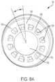 図8Dに示すようないくつかの例では、少なくとも1つのウエル120は、中央軸106から半径Rを離して中央軸106(図6Bに示す)の周りで円周方向に連続して環状形状を画定することができる。図8A~8Cに示すような他の例では、少なくとも1つのウエル120は、中央軸106から半径Rを離して中央軸106の周りの全周の一部分上を延びることができる。このようにして、ウエル120の末端部は、遠位部分104の本体によって互いから分離されて断続的な環状形状を画定する。図8A~8Cに示す例では、ウエル120のすべては、中央軸106から同じ半径Rを離して設けられる。図8A~8Cを参照すると、複数のウエル120の各々は、中央軸106の周りの全周の角度延長部α上を延びてウエル120の長さを画定することができる。ウエル120は、均等または不均等の角度延長部αを有することができる。複数のウエル120の各々は、連結リブ128によって隣接するウエル120から分離され得る。連結リブ128は、1つまたは複数のウエル120の存在による本体100の中央部分130と本体100の外側部分132との間の空隙を渡す。このようにして、図4Bに示す針58などのカニューレが膜34から後退された後、膜本体100の寸法的安定性が保持される。  In some examples, such as shown in FIG. 8D, at least one well 120 has a circumferentially continuous annular shape about central axis 106 (shown in FIG. 6B) spaced apart from
