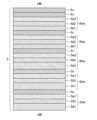 第1障壁層は、n型不純物を含んでいる。この第1障壁層のn型不純物濃度について、第1井戸層の間に位置する第1障壁層のn型不純物濃度は、第2井戸層の間に位置する第1障壁層のn型不純物濃度よりも高くしている。また、第2障壁層は、第1障壁層よりも低いn型不純物を含んでいる。 The first barrier layer contains n-type impurities. Regarding the n-type impurity concentration of the first barrier layers, the n-type impurity concentration of the first barrier layers located between the first well layers is equal to the n-type impurity concentration of the first barrier layers located between the second well layers. higher than Also, the second barrier layer contains a lower n-type impurity than the first barrier layer.