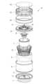 再び図3において、6は逆円錐台形をなす吸音材ホルダーである。この吸音材ホルダー6は下から上方に従って内径が順次拡がるとともに、間隔をおいて配置された複数のリング部材6aと、これらリング部材6aを連結する複数のリング連結部材6bとにて構成され、吸音材5を第1のダクト4の内周面と、吸音材ホルダー6との間に挟み込んで取付けることができる。各リング連結部材6bも周方向に間隔を介し配置され、リング部材6aとリング連結部材6bとの間に窓6cが形成され吸音材5のテーパ面5aが露出し、騒音を吸音するようになっている。なお、吸音材5を成形品にて形成し、第1のダクト4の内周面に接着固定するようにした場合、吸音材ホルダー6はなくてもよい。Again in FIG. 3, 6 is a sound absorbing material holder having an inverted truncated cone shape. The sound absorbing