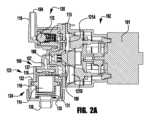 図2Aおよび図2Bは、サックバックデバイス123を有するシステム100の(一部分の)断面図である。図4は、サックバックデバイス123の拡大断面図である。例示的なシステム100は、液体入口開口部104、液体入口通路110、一方向液体入口弁126を含み、これは、例えば、示すように、ボール112およびばね113を有するボール弁アセンブリとしうる。開示された実施形態では、その他のタイプの一方向入口弁が使用されうる。いくつかの実施形態では、一方向液体入口弁は、マッシュルーム弁、アンブレラ弁、フラッパー弁、スリット弁、ダックビル弁、マッシュボール弁等であってもよい。例示的なシステム100は、ポンプ部分102およびモーター101を含む。ポンプ部分102は四つのポンピングダイアフラムを含む。ポンピングダイアフラム121A、121Bをこの図に示す。ポンプダイアフラム121Aは、液体ポンプダイアフラムである。ポンプダイアフラム121Bおよび二つの追加のポンプダイアフラム(図示せず)は、空気ポンプダイアフラムである。  2A and 2B are (partial) cross-sectional views of