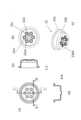 貫通孔22c1の切り残し22cr1は、270°の位置にある。また、貫通孔22c2の切り残し22cr2は330°の位置にある。同様に、貫通孔22c3の切り残し22cr3は30°の位置、貫通孔22c4の切り残し22cr4は90°の位置、貫通孔22c5の切り残し22cr5は150°の位置、貫通孔22c6の切り残し22cr6は210°の位置にそれぞれ設けられている。したがって、貫通孔22c毎に舌片22caの折れ込み方向が異なる。すなわち、リード材14毎に挿入される方向が異なる。  The uncut portion 22cr1 of the through hole 22c1 is positioned at 270°. Also, the uncut portion 22cr2 of the through hole 22c2 is positioned at 330°. Similarly, the uncut portion 22cr3 of the through-hole 22c3 is positioned at 30°, the uncut portion 22cr4 of the through-hole 22c4 is positioned at 90°, the uncut portion 22cr5 of the through-hole 22c5 is positioned at 150°, and the uncut portion 22cr6 of the through-hole 22c6 is They are provided at positions of 210°. Therefore, the folding direction of the tongue piece 22ca differs for each through