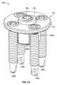 図9Aおよび図9Bに示すように、複数のフィン150A~150Dが第1の略内側位置にあるとき、プラグ160の外側ねじ切り部分164の一部がコレット130から突出し、一方では、プラグ160の先端部分162がコレット130の内側ねじ切りボア138内に完全に配置される。対照的に、図11Aおよび11Bに示されるように、複数のフィン150A~150Dが第2の略外側位置にあるとき、プラグ160の外側ねじ切り部分164の全体が、コレット130の内側ねじ切りボア138内に配置される。代替的に、いくつかの実装では、複数のフィン150A~150Dが第2の略外側位置にあるとき(図11B)、プラグ160の上面または上縁は、コレット130の上面または上縁と略同一平面になり得る。さらに代替的に、他の実装では、複数のフィン150A~150Dが第2の略外側位置にあっても(図11B)、プラグ160の外側ねじ切り部分164の一部は、コレット130から突出することができる。  As shown in FIGS. 9A and 9B, when the plurality of