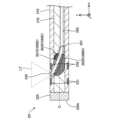 ここで、光ファイバは一般的に、コアと、コアの外周面を被覆するクラッドとの屈折率差を利用した光の全反射によって光を伝達し、先端において露出したコアから光を出射する。一方、生体管腔内に挿入して使用されて体内深部で光を照射するデバイスにおいて、光の照射方向は、生体管腔を取り巻く組織の方向、すなわちデバイスの長軸方向と交差する方向であることが好ましい。この点、特許文献4及び特許文献5に記載のデバイスでは、ガイド手段(ガイド部材)を備えており、このガイド手段を用いて光ファイバを動かすことによって、光ファイバの先端をデバイスの長軸方向と交差する方向に向けることができる。しかし、特許文献4及び特許文献5に記載の技術では、デバイスの構造が複雑化し、デバイスが太径化するという課題があった。また、特許文献2及び特許文献3に記載のデバイスでは、デバイスの長軸方向と交差する方向に光を照射することについて何ら考慮されていない。  Here, an optical fiber generally transmits light by total reflection of light utilizing the difference in refractive index between a core and a clad covering the outer peripheral surface of the core, and emits light from the core exposed at the tip. On the other hand, in a device that is inserted into a biological lumen and used to irradiate light deep inside the body, the direction of light irradiation is the direction of the tissue surrounding the biological lumen, that is, the direction that intersects the longitudinal direction of the device. is preferred. In this regard, the devices described in Patent Documents 4 and 5 are provided with guide means (guide member), and by moving the optical fiber using this guide means, the tip of the optical fiber is moved in the longitudinal direction of the device. can be oriented in a direction that intersects the However, the techniques described in Patent Documents 4 and 5 have the problem that the structure of the device is complicated and the diameter of the device is increased. Moreover, in the devices described in