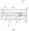 加えて、レーザー共振器の或る実施形態では、「n+1」次ラマンモードの成長は、図2に示されている様に、「n+1」次ラマンモードでのエネルギーがファイバーコアから射出されるようにFBGを傾けることによって抑制できる。この抑制は、n次ラマンモードがエネルギー的に従来のパワー限界を超えて増大することを可能にさせる。この実施形態では、レーザーパターンはクラッディングの中まで延びていることに注目されたい。 Additionally, in certain embodiments of the laser cavity, the growth of the 'n+1' order Raman mode is such that the energy in the 'n+1' order Raman mode is ejected from the fiber core, as shown in FIG. can be suppressed by tilting the FBG to This suppression allows the n-th order Raman mode to grow energetically beyond the conventional power limit. Note that in this embodiment the laser pattern extends into the cladding.
