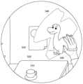 ユーザが手で触れた箇所を鏡面にしてユーザの現実の姿やユーザの身体を仮想的に表すキャラクタを鏡面に描画してもよい。これにより、ユーザが手で触れた箇所だけを仮想的な鏡にすることができる。 A part touched by the user's hand may be mirrored, and a character representing the user's actual appearance or the user's body may be drawn on the mirrored surface. As a result, only the portion touched by the user's hand can be made into a virtual mirror.
