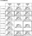 次に、図7を参照して、計画生成部13が生成する訓練計画について説明する。図7は、実施の形態1にかかる訓練計画を示す第1の図である。図7は、図6に示した実績情報を受け付けた計画生成部13が生成した訓練計画が示されている。また図7に示す表の構成は、図5に示したサンプル情報と同様である。図7の表に示す訓練計画は、訓練者P1の訓練計画であり、時期は、訓練開始前である。  Next, a training plan generated by the