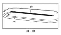 ここでステップ604および図7Dを参照すると、上部外側層501aおよび上部内部ライナ部分500aは、クロージャ301に固定され、上部キャップアセンブリ300を形成することができ、上部外側層501aおよび上部内部ライナ部分500aは、平坦な水平面においてクロージャ301に固定されることができる。図5A~図5Bを参照すると、上部外側層501aは、ポリマー溶接または接着剤によってクロージャ301に取り付けられることができる。特に図5Bに概略的に示されるように、クロージャ301は、防水ジッパーテープ306を形成することができる第1のフランジ301aおよび第2のフランジ301bを備えることができる。上部外側層501aは、クロージャ301の第1のフランジ301aおよび第2のフランジ301bの上面に直接取り付けられることができる。一例では、第1のフランジ301aおよび第2のフランジ301bは、上部外側層501aの下側にRF溶接されることができる。他の例では、図7Eに示されるように、上部内側ライナ部分500aは、タブ515を備えることができる。タブ515は、組み立てプロセスにおいて、上部内側ライナ部分500aの外側ストリップを組み立て中に所定の位置に保つのを助けることができ、上部キャップアセンブリ300が形成された後に取り外されることができる。  Referring now to step 604 and FIG. 7D, upper