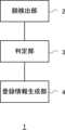 顔検出部2は、複数の人物の顔が写された画像から顔を検出する。判定部3は、顔検出部2により検出された顔が、予め定められた条件を満たすか否かを判定する。登録情報生成部4は、顔認証システムにおける認証対象を管理する情報である登録情報を生成する。登録情報生成部4は、判定部3により予め定められた条件を満たすと判定された複数の顔のそれぞれの部分画像と、顔認証における認証対象のグループを識別する識別子とを関連づけることにより登録情報を生成する。すなわち、登録情報は、具体的には、予め定められた条件を満たすと判定された複数の顔のそれぞれの部分画像と、顔認証における認証対象のグループを識別する識別子とを関連づけた情報である。  A